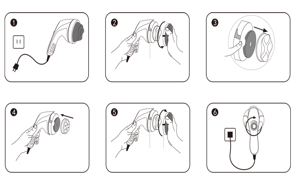 - Please unplug the power adapter before replacing the massage head.