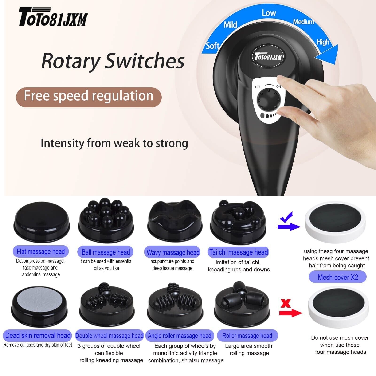 1【Multi-Function】Upgraded body massager can be used as a massage tool for deep tissue massage on the body,or as a body sculpting device for stomach,belly,waist,abdomen,buttocks,legs,arms. Often used as cellulite massager, body sculpting machine,lymphatic massager, belly massager,abdominal massager,thigh massager, massage roller, wand vibration massager, massage machine has 8 different massage heads to provide more massage experience, replace massage heads can be suitable for different body parts.