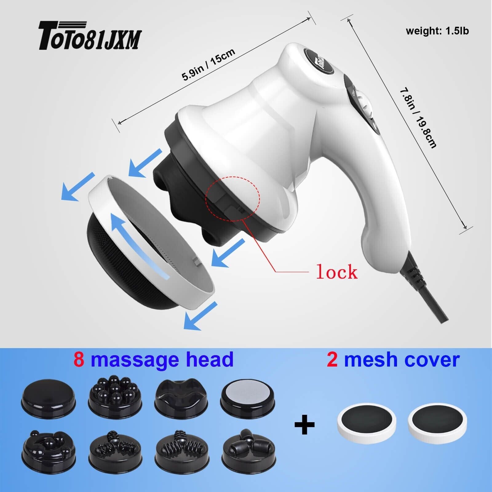 【Powerful Massage Tool】:This cellulite massager or fat remover machine is often used for massage, body sculpting. There are 8 massage heads. Wave head: As deep tissue massager, suitable for neck back as full body massage. Ball head: Use with essential oils will cause essential oils to be absorbed,as cellulite rollers for stomach,waist,belly,thigh,calf,hip,cellulite remover machine. Flat head: for face arm. Pumice Face: Exfoliating massage, smooth skin or foot polish.