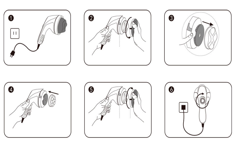 1.【Multiple Massage Heads】This electric cellulite massage device has 4 different massage heads and different massage head has different massage effect; smooth head for full body, especially for face, abdomen, stomach, berry, arms as stress relief massages; beaded massage head with essential oils for abdomen, thighs, hip as essential oil massages; Wavy massage head for neck, back, shoulders, waist as deep tissue massages; pumice face head: exfoliating massage, smooth skin or feet buffing.